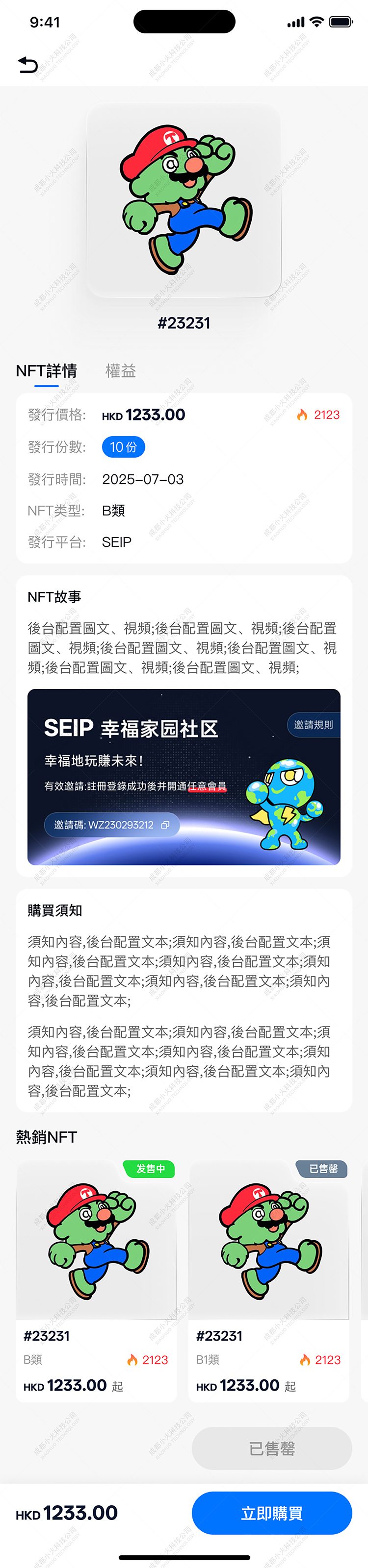 这是我们公司为某企业开发的一套NFT会员社区自治软件,包含商家入驻,社区自治,社群投票,社区活动,链主入驻,家族NFT,会员分类,会员体系,邀请好友,合伙人奖励等功能。