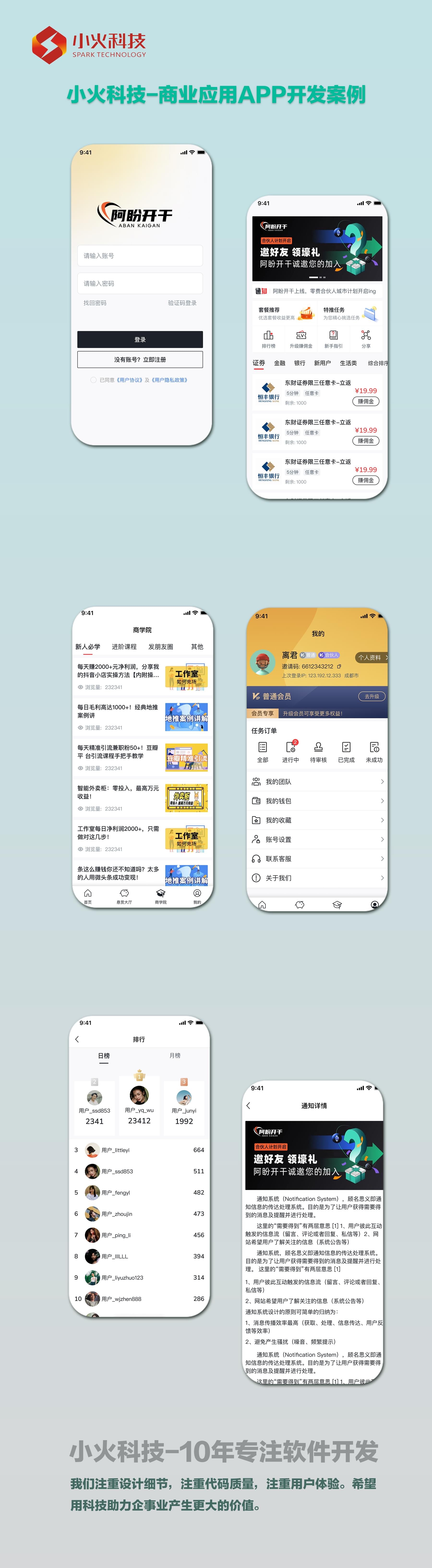 这是小火科技的一套APP案例。在我们接触的商业项目中,可以接触到很多很好的商业思维。在后期的运维服务中,我们很欣喜地看到我们开发的项目,获得了不错的效益。我们在总结的时候,也会复盘这些项目,为的是用更专业的态度,来对待我们未来的每一位客户。下面我们来看一下这套案例。