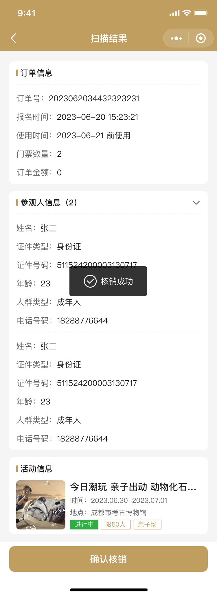 为了提高考古活动的组织和管理效率,小程序特别设计了开放日核销、社教团队核销、社教个人核销和讲座核销等功能。这些功能帮助工作人员快速确认参与者的预约信息,确保活动的顺利进行。同时,核销功能也为用户提供了一种便捷的签到方式,提升了整体的活动体验。