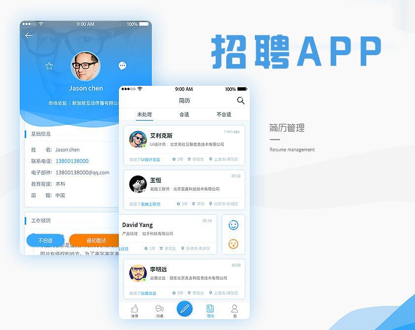 2.简历制作:用户可以在APP中创建和编辑电子简历,并通过APP中的在线聊天功能进行在线沟通。