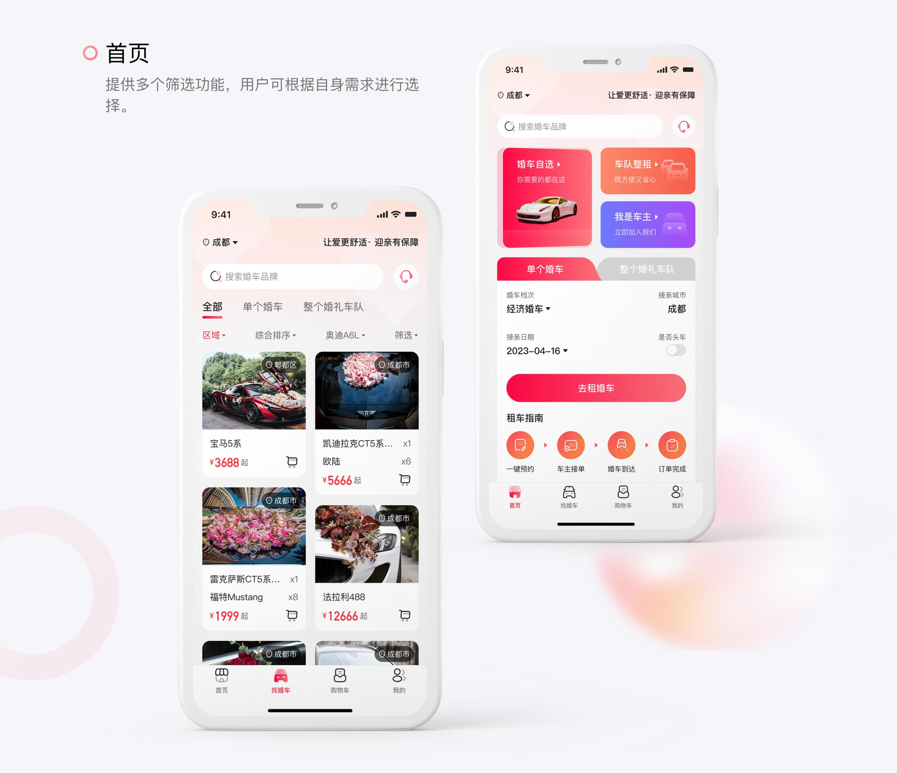 婚车租赁APP定制开发公司-单车、婚礼车队在线预定