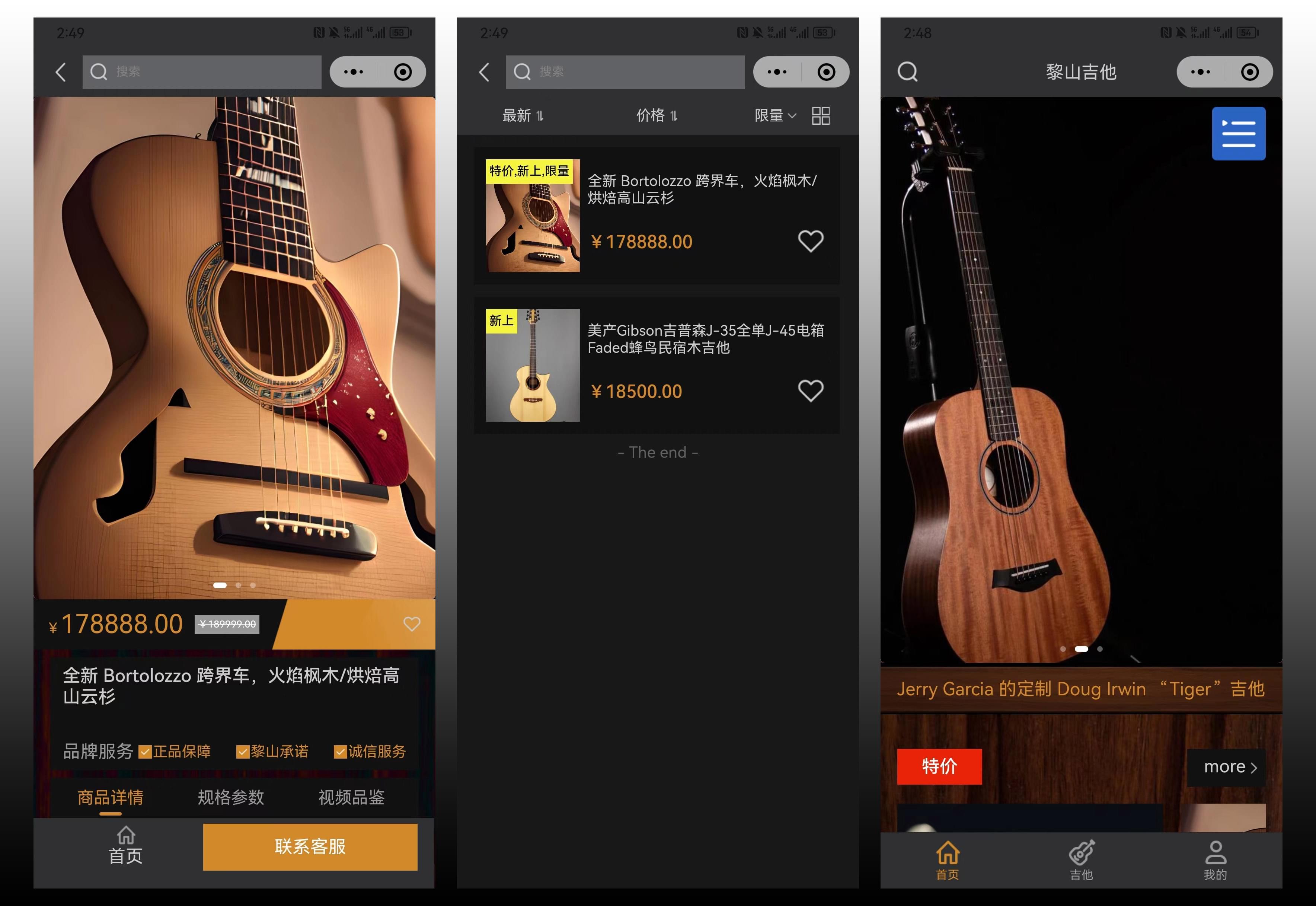 与普通吉他不同的是,该吉他平台商城的定位是中高端吉他,售价一般都几万到几十万不等。客户从网络上浏览到我们的案例之后,喜欢我们的设计,就找到了我们。