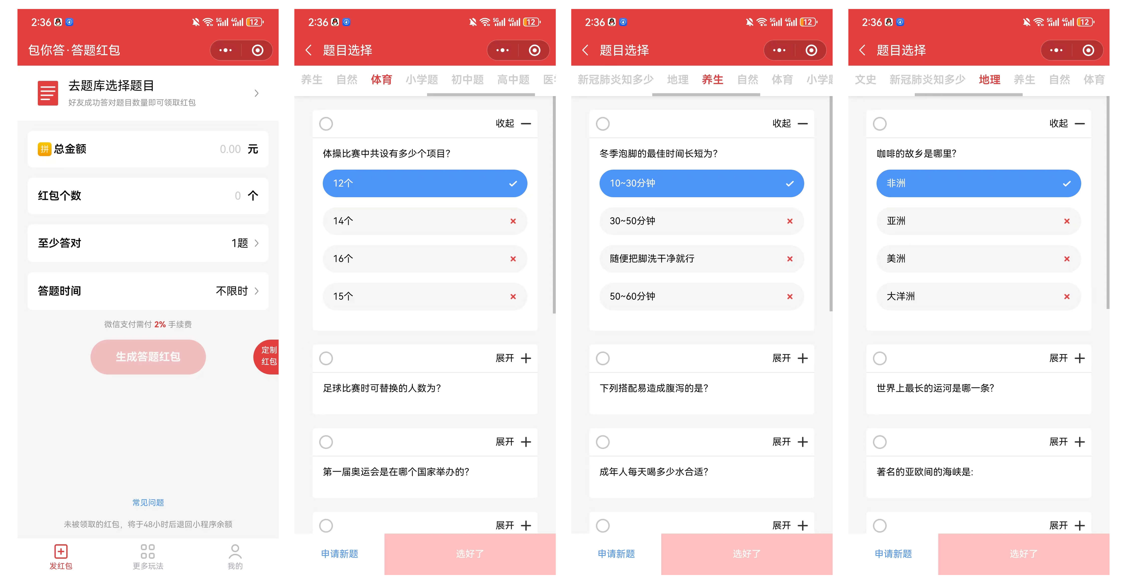 这款微信答题红包小程序的核心功能在于,用户可以自定义题目和答案,好友答对一定数量的题目之后,可以获得相应的红包。这样一来,不仅让用户在答题的过程中获得知识,还增加了互动的趣味性,让人们在轻松愉快的氛围中,增进彼此的了解和感情。同时,我们可以通过答题,把自己积累的知识教授给自己的孩子,让孩子也参与趣味答题。人生就是一个积累的过程,我们不能始终在原地踏步,我们应该渴望更多的知识,渴望与好友真诚交流的快乐,渴望给孩子带来知识的满足感。
