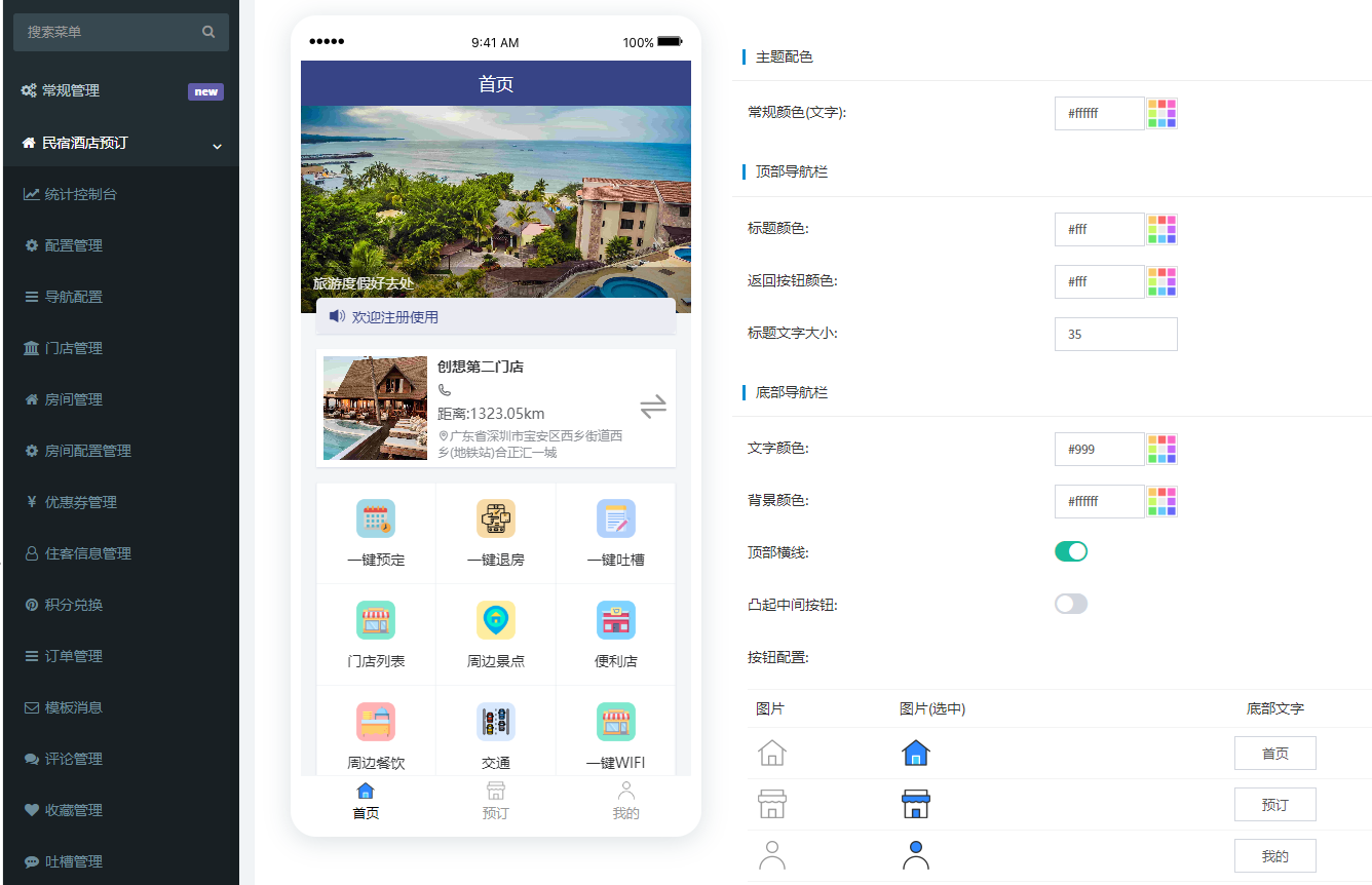 在旅游行业相关的软件系统中,多门店民宿酒店预订管理系统已经成为酒店行业的标配。下面介绍一款快速我们部署的专业民宿酒店预订小程序,它集成了预订、退房、WIFI连接、吐槽、周边信息等功能,旨在为酒店业主提供一个全面、高效的预订和管理解决方案。这些功能完全能满足普通的酒店的需求,非常实用!