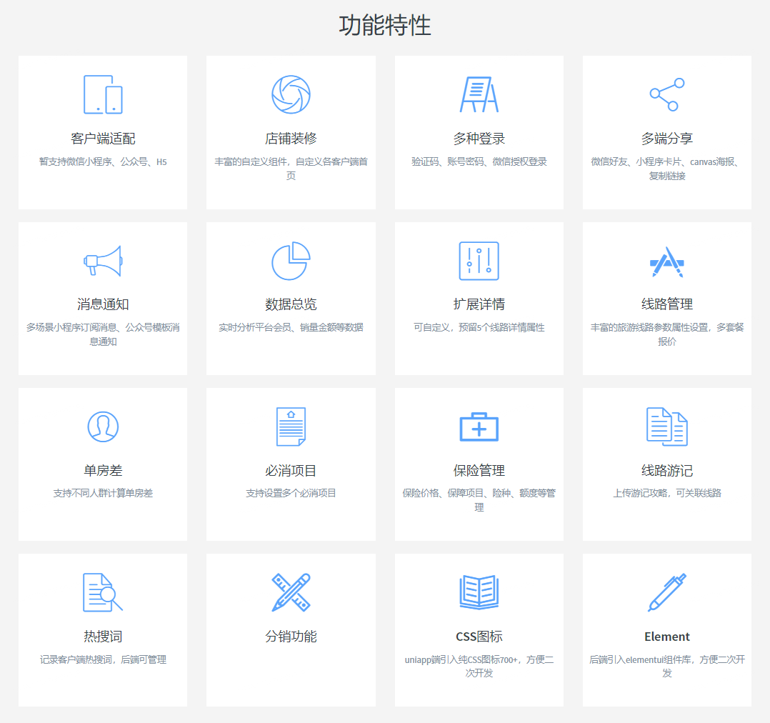 首先,这套旅游管理系统拥有丰富的装修组件,您可以根据自己的需求自定义各客户端首项,提供个性化的用户体验。此外,系统暂支持微信小程序、公众号和H5,覆盖了广泛的用户群体,让您的业务触角伸展到各个角落。